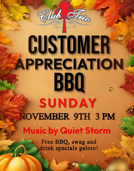 Sunday, Nov 9 Customer Appreciation! 3 PM